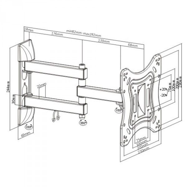 Настенный кронштейн iTECHmount LCD53B White с функцией выноса, наклона и поворота рассчитан на телевизоры диагональю от 23” до 42” максимальным весом до 20 кг, позволит надежно закрепить Ваш телевизор на стене Вашего дома или офиса. Данная модель кронштейна имеет 3 степени свободы, позволяет регулировать угол наклона вашего телевизора в диапазоне 20° вверх и 20° вниз, а так же угол поворота экрана до 180°. Вы так же сможете задать необходимый Вам отступ от стены в диапазоне от 82 до 392 мм. Наличие кабель-канала позволит избежать беспорядка из свисающих и спутанных проводов, которые подключаются к телевизору, а белый цвет кронштейна будет идеально сочетаться с телевизором в белом корпусе, в светлых интерьерах. Для производства всех кронштейнов iTECHmount используется высококачественный металл и соединительные элементы, каждая модель проходит тщательные испытания, строгую сертификацию производителя, что дает возможность давать гарантию 10 лет на наши изделия. Выбирая кронштейны iTECHmount, Вы можете быть на 100% уверены в надежности и долговечности кронштейна и безопасности Вашего телевизора.