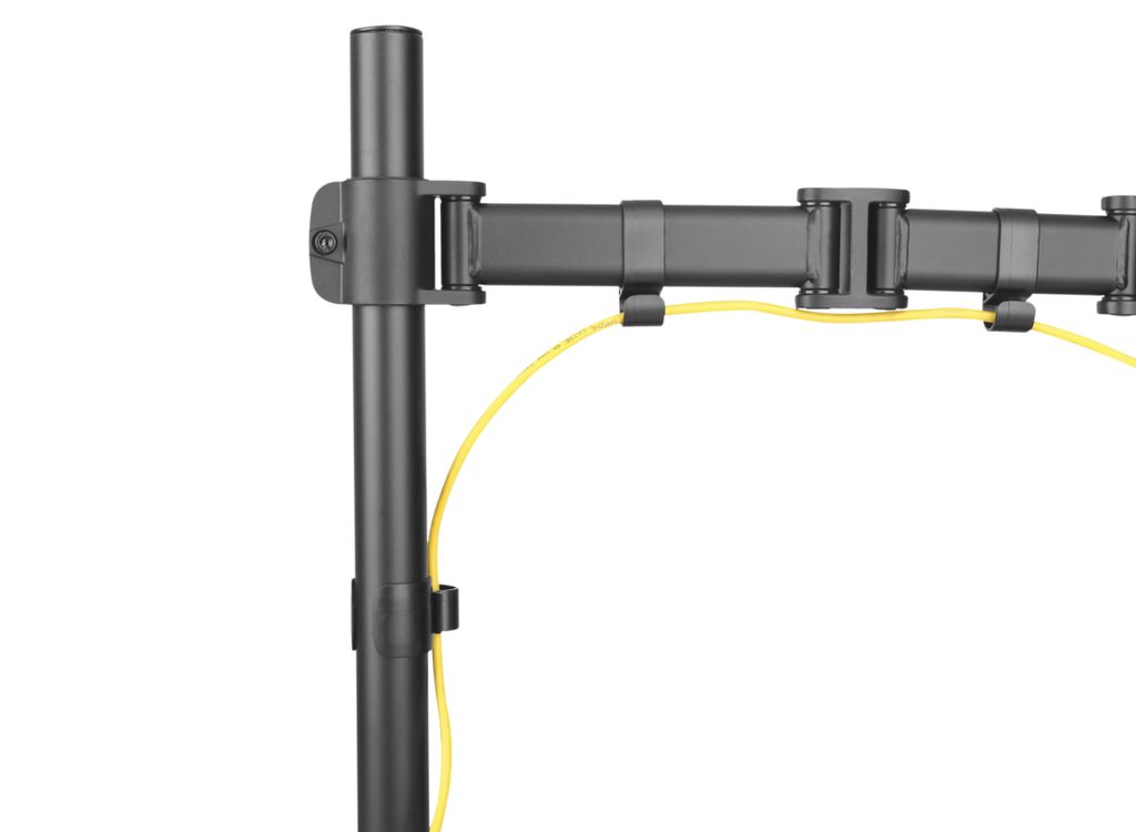 Данная модель кронштейна оборудована двумя вариантами струбцины, которые позволяют легко закрепить кронштейн на краю стола либо в любом месте столешницы через отверстие в ней. Наличие кабель-канала позволит избежать беспорядка из свисающих и спутанных проводов, которые подключаются к устройству.
