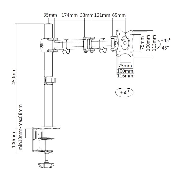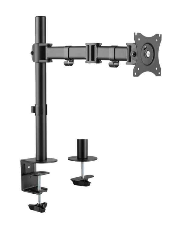 Настольный кронштейн для монитора и ТВ iTECHmount MBS-03F поможет быстро и надежно закрепить Ваш монитор или телевизор на столе. Данная модель рассчитана на мониторы и телевизоры диагональю от 13” до 27”, с максимальным весом до 8 кг. 4 степени свободы, позволят регулировать угол наклона монитора в диапазоне 45° вверх и 45° вниз, угол поворота в диапазоне 90° влево и 90° вправо, расположение экрана по высоте до 450 мм от основания кронштейна, по горизонтали в диапазоне 35 мм - 428 мм от основания, а функция вращения на 360° даст возможность легко менять ориентацию положения экрана из горизонтальной в портретную и обратно.