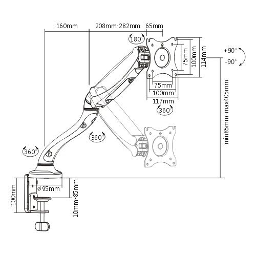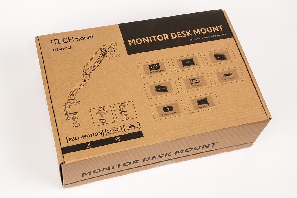 Настольный кронштейн для монитора и ТВ iTECHmount MBSG-02F поможет быстро и надежно закрепить Ваш монитор или телевизор на столе, а встроенный в корпус кронштейна газлифт, позволяет регулировать положение монитора во всех плоскостях, не прилагая при этом существенных усилий. Данная модель рассчитана на мониторы и телевизоры диагональю от 13” до 27”, с максимальным весом до 6 кг. 4 степени свободы, позволят регулировать угол наклона монитора в диапазоне 90° вверх и 90° вниз, а функция вращения на 360° даст возможность легко менять ориентацию положения экрана из горизонтальной в портретную и обратно.