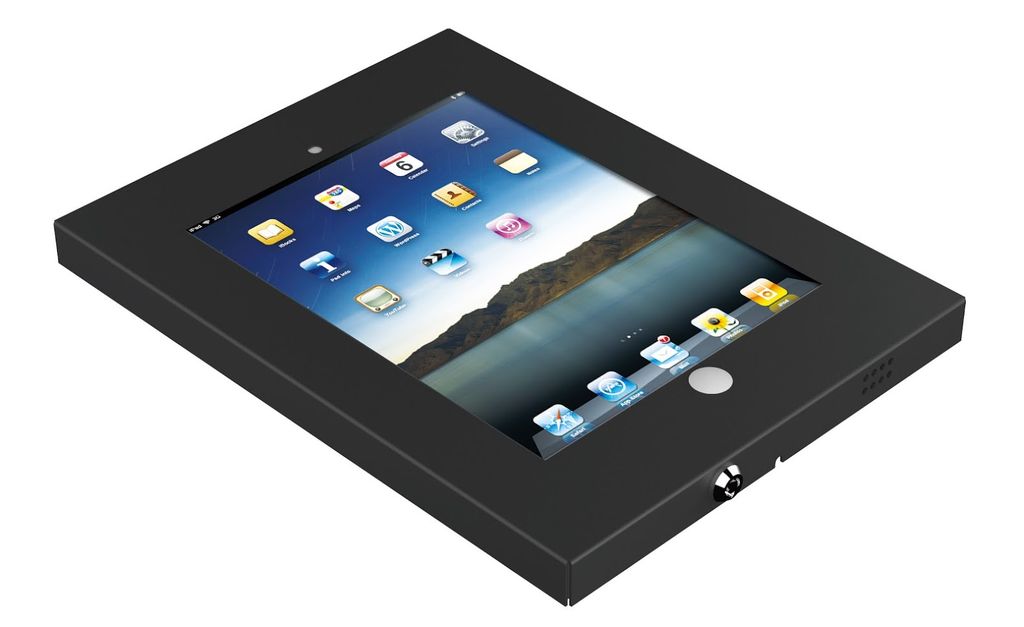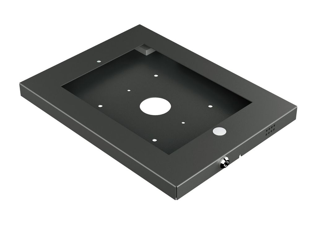 Защитный кейс для планшетов 9.7" iPad/iPad Air с замком, с возможностью крепления к напольным, настольным или настенным кронштейнам iTECHmount. В конструкции предусмотрены крепежные отверстия стандарта VESA 100x100, которые позволяют закрепить планшет на любом настенном или потолочном кронштейне, поддерживающим данный стандарт.
