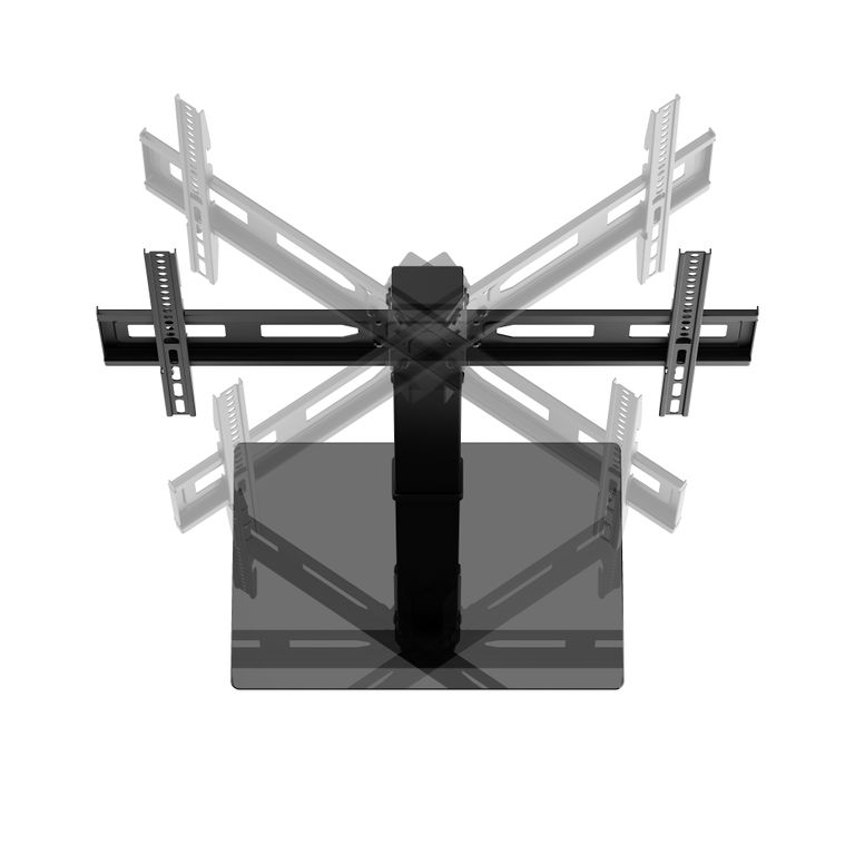 Настольная подставка iTECHmount KFS-641 с поворотным кронштейном для телевизора, станет отличным решением, при необходимости установить телевизор на горизонтальную поверхность. Стильный дизайн подставки из черного закаленного стекла, возможность регулировать высоту расположения телевизора на уровне 361 или 418 или 436 или 475 или 493 или 550 мм от поверхности стола, являются основными преимуществами и отличной альтернативой стандартным подставкам, идущим в комплекте с телевизорами. Надежная конструкция из высококачественной стали, закаленное стекло толщиной 8 мм, позволит надежно установить Ваш телевизор диагональю от 37" до 75", весом не более 40 кг. Данная модель кронштейна позволит Вам так же регулировать угол поворота телевизора в диапазоне до 35° вправо и до 35° влево.